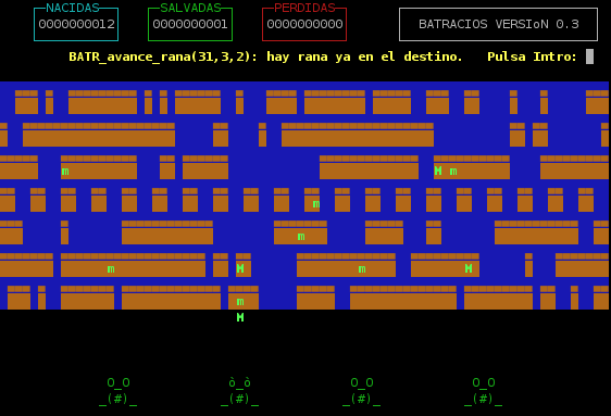 en que se moverán los troncos. int BATR_avance_troncos(int fila)void BATR_descansar_criar(void)int BATR_parto_ranas(int i,int *dx,int *dy)dx y
