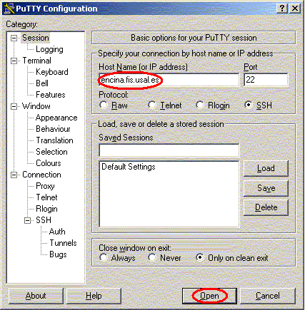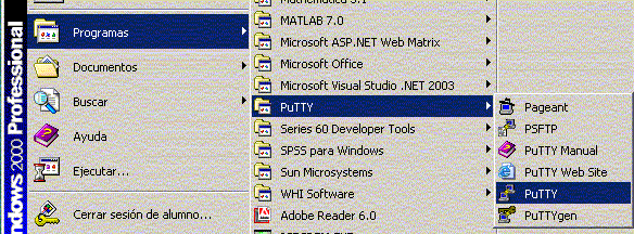 - Abrid el programa PuTTY. Se encuentra en Inicio,