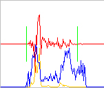 La línea azul indica la densidad de cruces por cero en nuestra palabra. En este ejemplo vemos que apenas hay cruces en las zonas de silencio, aunque se mantiene dudosa en los límites. En ambientes con ruido la función de cruces por cero puede tener un valor alto incluso en zonas de silencio, complicando la limitación de la palabra.